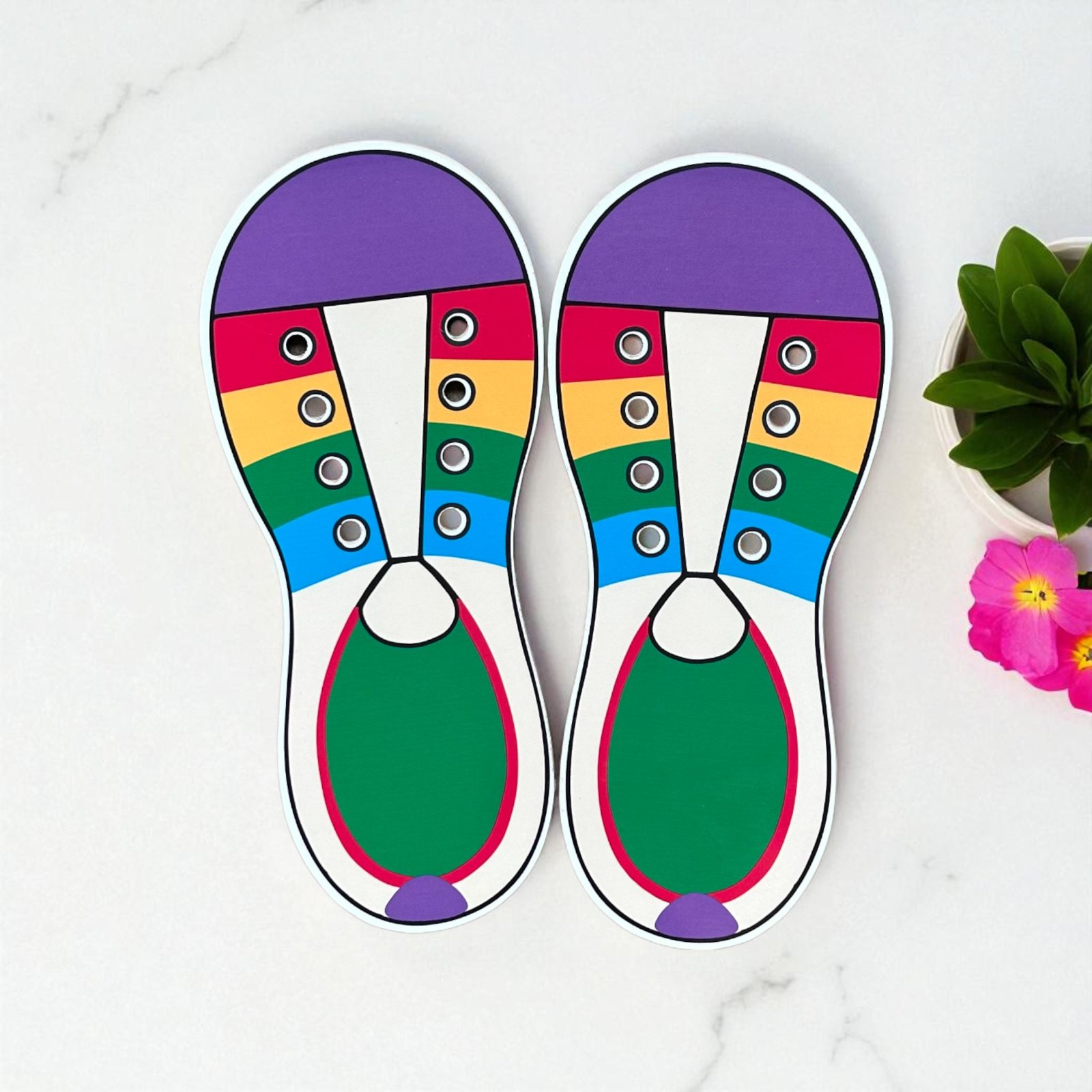 Help your little one master the life skill of tying shoelaces with this colorful and engaging activity board! Designed like a pair of vibrant sneakers, this hands-on learning tool encourages children to develop fine motor skills, hand-eye coordination, and independence in a fun, stress-free way.