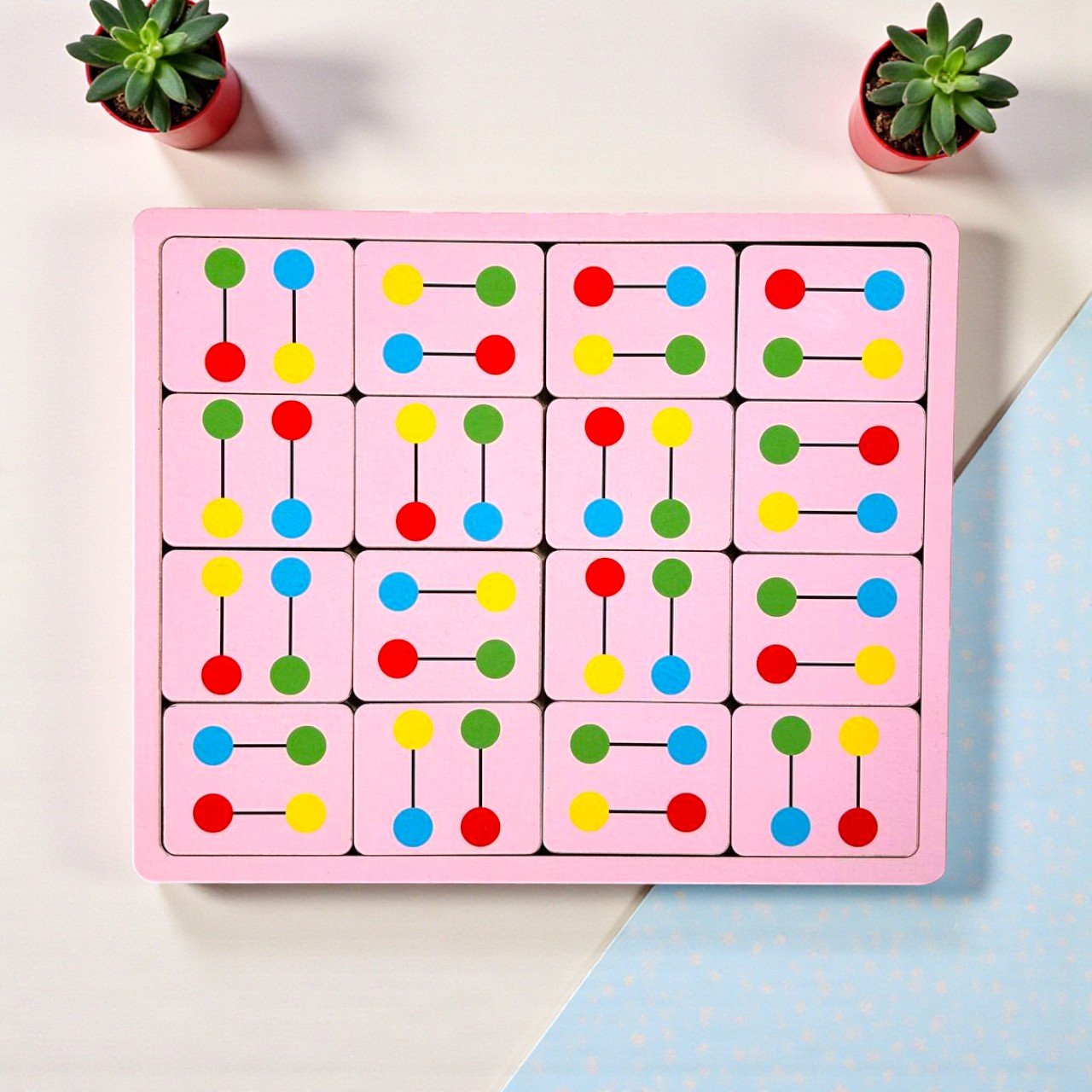 The Smart Color Link Logic Board is a visual reasoning puzzle that challenges children to observe, analyze, and recreate color-link patterns using logic and focus.