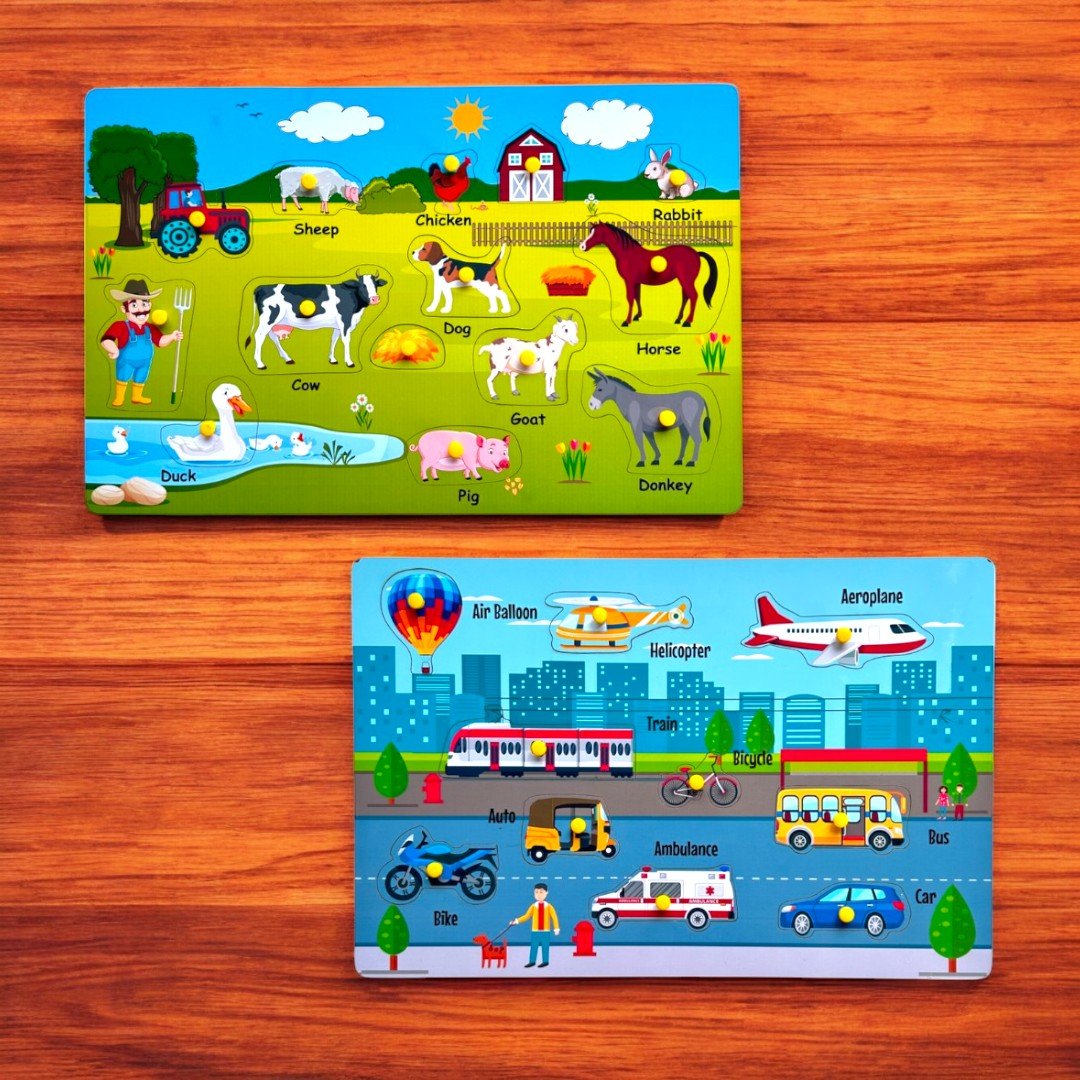 Perfect for toddlers and preschoolers, this combo puzzle is a delightful way to explore the wonders of the farm and the excitement of transportation in one educational toy.